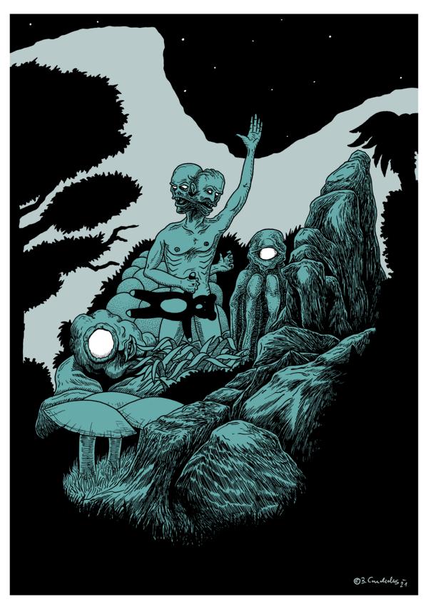 GEH UND FRAG DEN PILZ Veröffentlicht am 3. April 2021 von admin Antworten Bjoern Candidus – GEH UND FRAG DEN PILZ / Aquarell und Tusche auf Papier / 21 x 14,8 cm / 2021