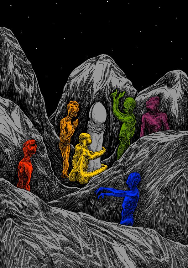 Bjoern Candidus – DIE ANBETUNG / Zeichnung, digital bearbeitet / 2021